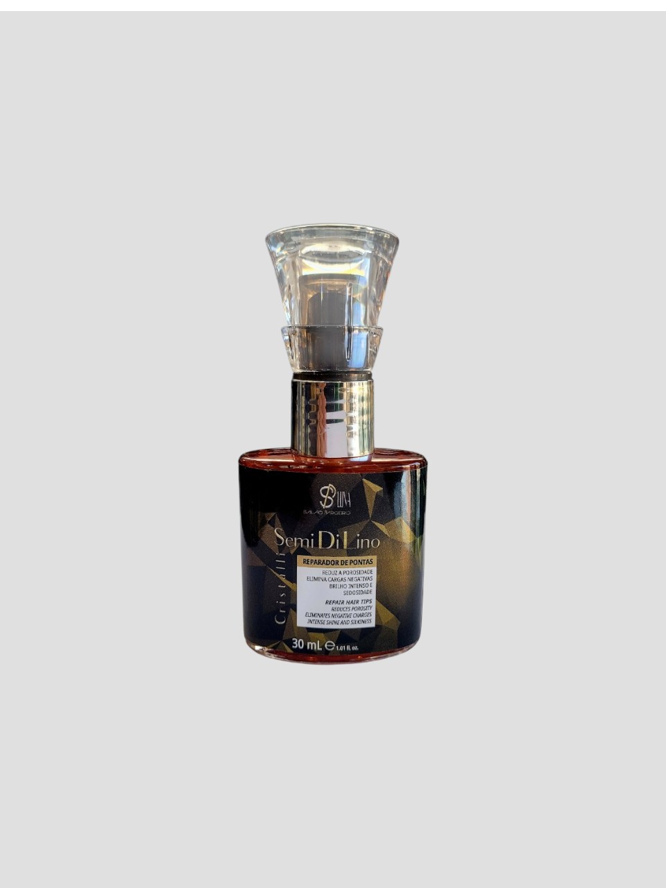 Reparador Semi Di Lino Cristalli: Com alto poder de brilho e proteção, trata os fios reduzindo a porosidade e eliminando as cargas negativas do cabelo. Em sua fórmula estão presentes Silicones Aminicos e nobres que formam um filme sedoso e doados de brilho intenso.